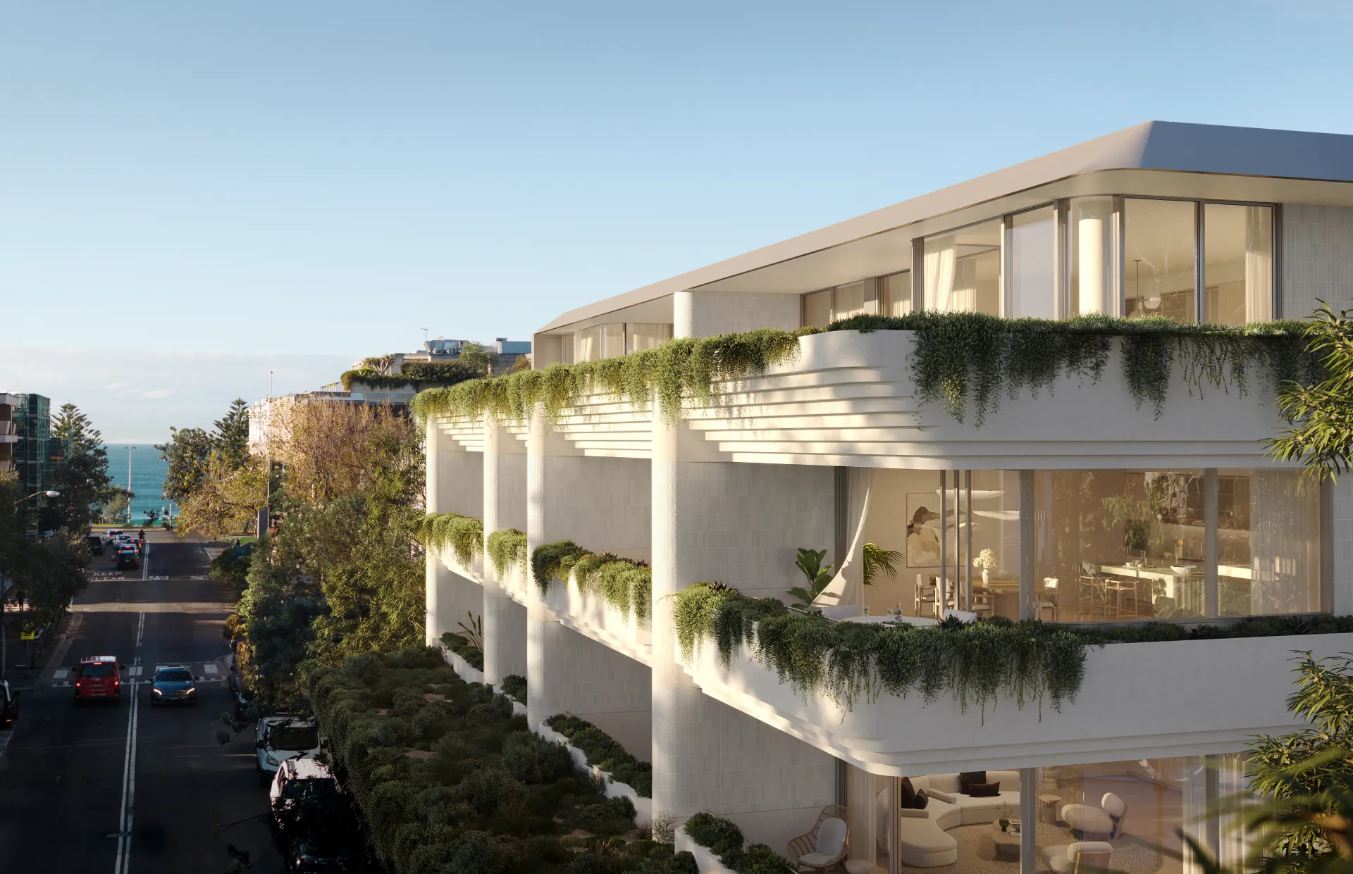 Inspired by coastal textures and the natural landscape of Bondi. Hall & Consett is grounded in greenery from its Avenue position and lifted by folding curves that mirror the coastline.